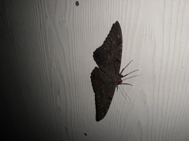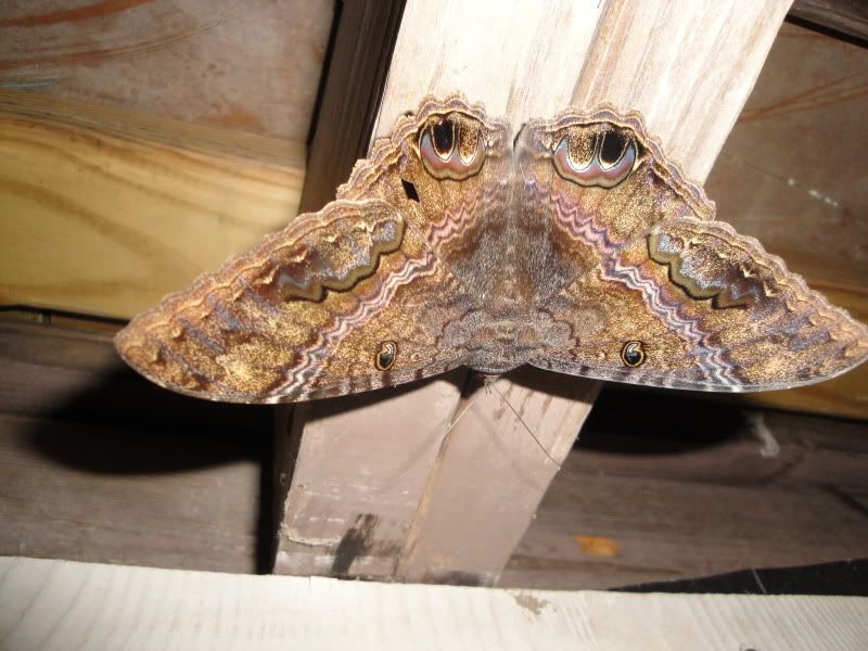 Can anyone ID this moth. 2 of them came out around 10pm and fluttered around the porch. It had a wing span of around 6" and it actually landed on Sandy and bit the fire out of him!